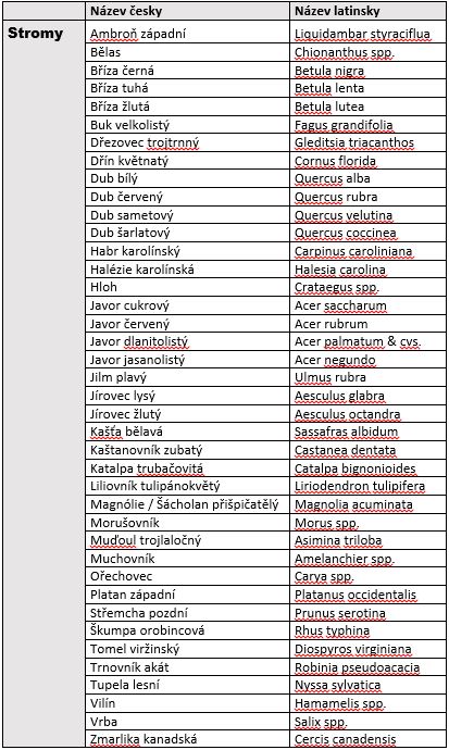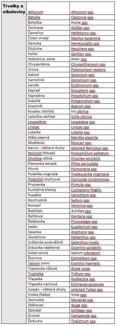 V následující tabulce najdete seznam rostlin, kterým společnost ořešáků nevadí: